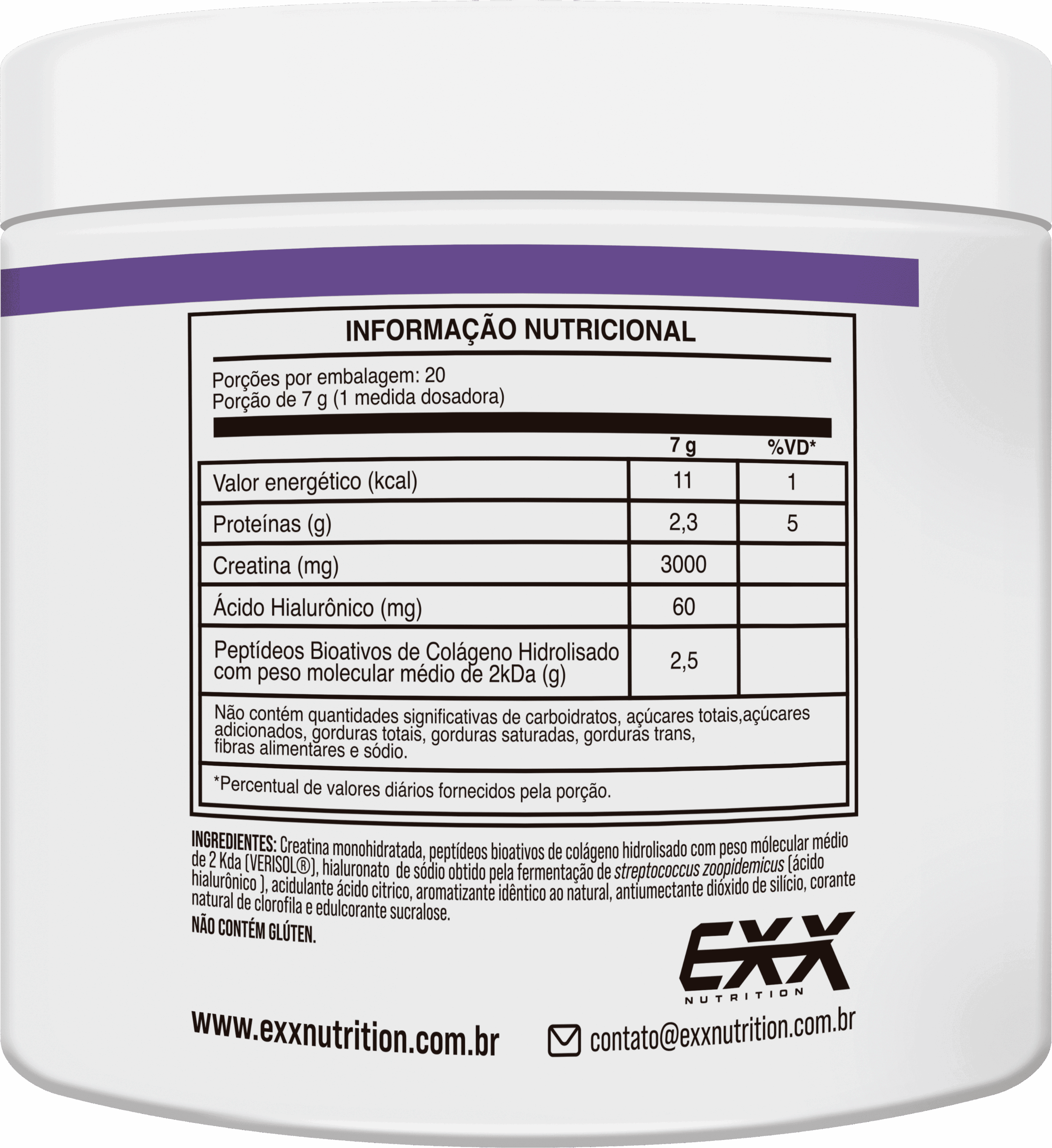 Modo de Uso: Misture um scoop (7g) do suplemento em 200ml de água ou sua bebida preferida. Consuma antes ou após o treino, ou conforme orientação do seu nutricionista. Experimente agora o novo Creatina + Colágeno Verisol + Ácido Hialurônico da Exx Nutrition e sinta a diferença na sua performance e bem-estar!